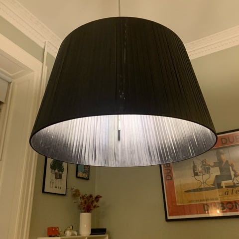 Lampeskærm, Loft lampe fra Ilva, lys grå med pære og ophæng. Ca. 2.5 meter ledning lige til at blive sat op.