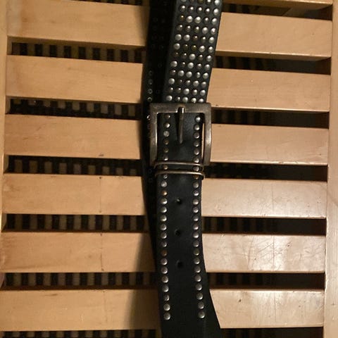 Bælte, Bælte , Depeche , str. 95 cm, Brun. ( Grey ), Læder , Ubrugt, Kraftigt bælte med sølv nitter og spænde. Normalpris 599,-kr