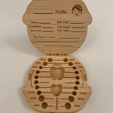 Andet, Mælketænder, Barslesgave eller dåbsgave, lille sød æske til mælketænder. Aldrig brugt/stadig i æske,