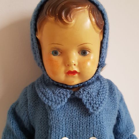 Dukker, Celluloid, 2 stk. små dukker af celluloid, dreng og pige. Måske i lokale dragter. Drengen har øjne der kan åbne og lukke. Pige har fået et tryk i panden men skjules lidt af hår. I ryggen står France nr 9. Drengen er 12 cm høj, pigen nok en smule mindre under kjolen. Kan sendes mod betaling af fragt eller hentes i Vinge, Frederikssund