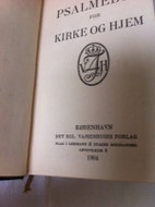 Antik Psalmebog for Kirke og Hjem med tilhørende "hylster" til opbevaring af bogen.