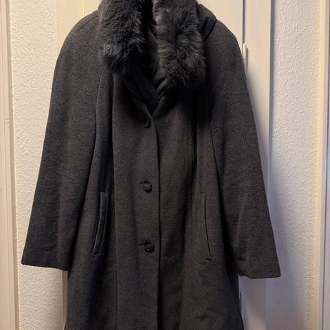 Frakke, str. 44, Lebek, Beige / camel, Uld og skind , Næsten som ny, Med rævepels på tørklæde