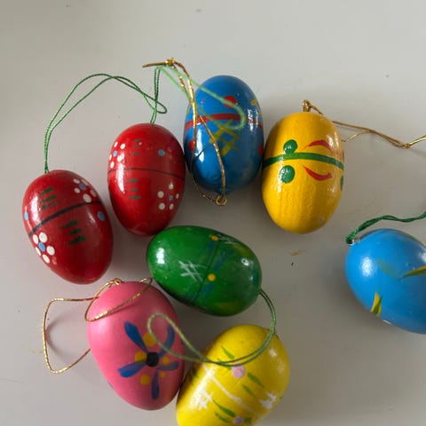 Påskeæg påskepynt trææg lakeret træ retropåske vintagepåske