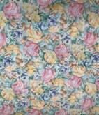 Stof, Trykfarvet, lærredsvævet let polyester. Velegnet til let sommergardin elle dug. Metervare, stofrest. Bemærk “ dobbelt bredde”