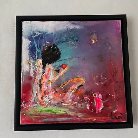Offset, Niels Christian Kierkegaard, motiv: Søren Kierkegaard Regine Olsen, b: 42 h: 60, A2 format i sort ramme