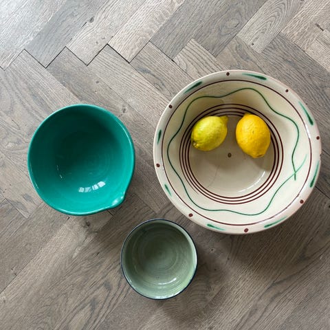 Har flotte dejfade til 199,-/stk og mindre skåle til 99,-/stk mm