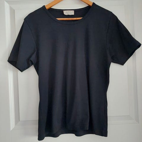 T-shirt, Scooter, str. 44, hvid med sorte prikker, 60% bomuld og 40% polyester, brystvidde 106cm,