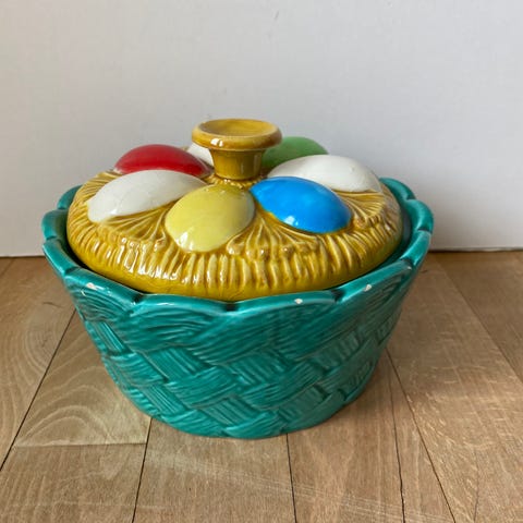 Blå vintage porcelæn, påske porcelæns kanin krukke, påskepynt