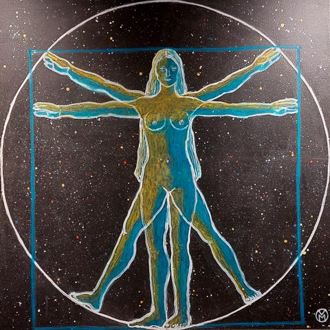 Blandede medier, Vibeke Moldberg, motiv: Portrætter/Figurer, stil: Ekspressionisme, b: 80 h: 80, Titel: Wolfgang Amadeus Mozart - musikkens mester.