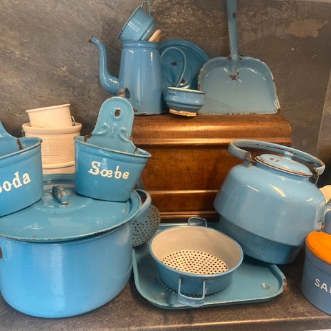 Køkkenudstyr, Blå Emalje, Saltkar - B: 17 H: 23 (nogen rust)