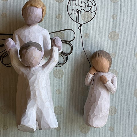 Figur med par, Willow Tree?, Smukt par i Willow Tree? Lidt usikker på oprindelsen, da der ikke er stempel, men indgå i en samling af rigtig mange Willow Tree figurer (se mine andre annoncer). Ca. 25,7 cm høj.