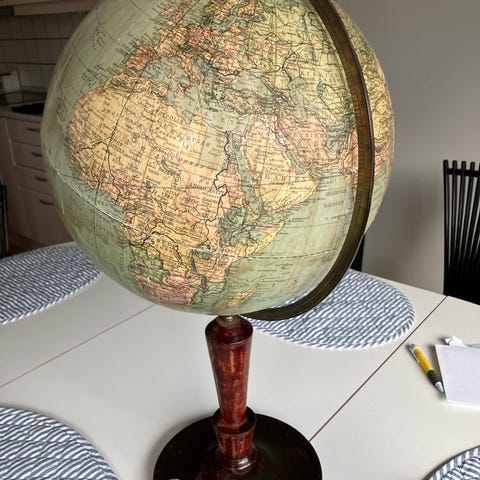 Antik globus, 100 år gl. h: 62
