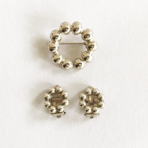 1) broche i sølv og forgyldt sølv prydet med talrige zirkoner, 4 x 1,5 cm