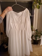 Konfirmationskjole, Luxux delux, str. 48, Fuldstændig pletfri og fejlfri fra røgfrit hjem. Er lille i størrelsen. Kostede 3000 fra ny. Brugt en gang. Der medfølger bælte og perlekrans til håret. Kostede 600 fra nyt. Også kun brugt den ene gang.