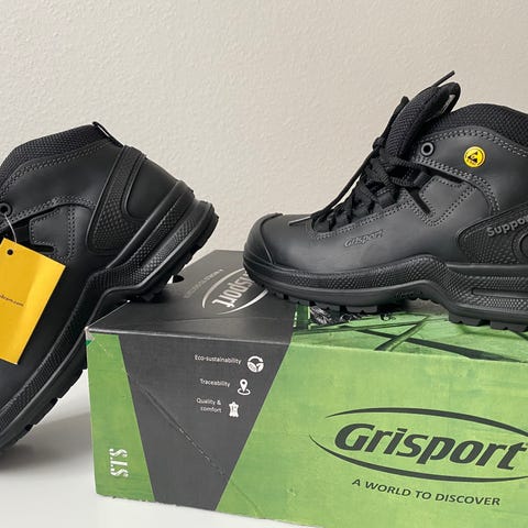 Sikkerhedssko, sikkerhedsstøvler, Bläkläder, Blåklæder. Helt nye støvler.