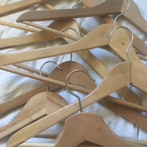 Træbøjler, 11 stk hvoraf de 8 er buksebøjler