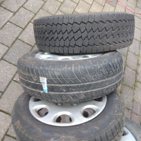 fælge med dæk, Toyo dæk 4 stk 155 x 13 på kadet e stålfælge.