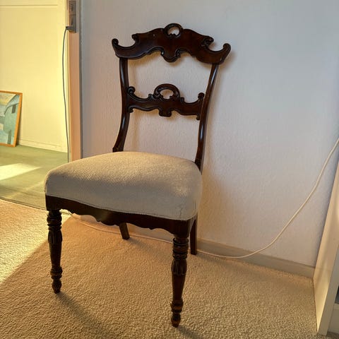Andet, Mahogni, - mahogni stol med blomstret silkebetræk