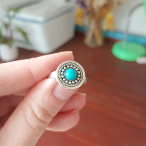 4 - ubrugt sølvring med indfattet blå opal. Stemplet for sølv - 925. Indre D 18 mm.