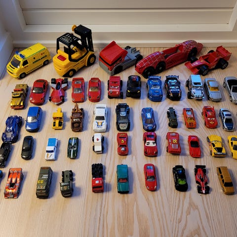18 biler, De fleste er i metal. nogle af dem har defekter.