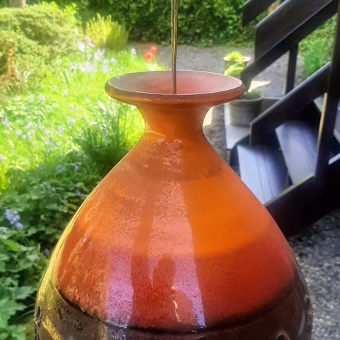 Anden loftslampe, Ukendt mærke, RETRO 70er loftlampe i keramik brun med flettet tykt "sejlgarns" ophæng om ledning.