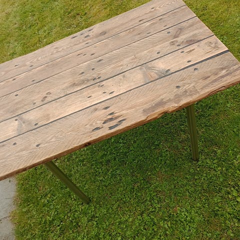 Sofabord, Planke sofabord med skrå ben længde 117 cm brede 70,5 cm højde 46 cm tykkelse 25 mm benhøjde 43 cm