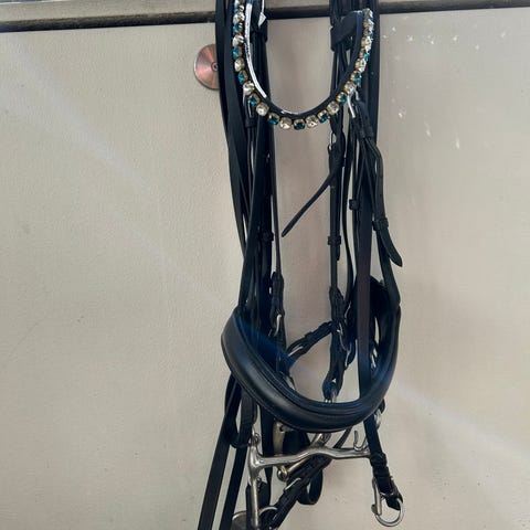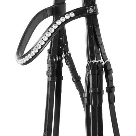 Jeg har skiftet den oprindelige bridon tøjle ud med en lækker soft læder tøjle ligeledes fra By Weber. Denne tøjle har indbyggede "stoppere" (se billede)
