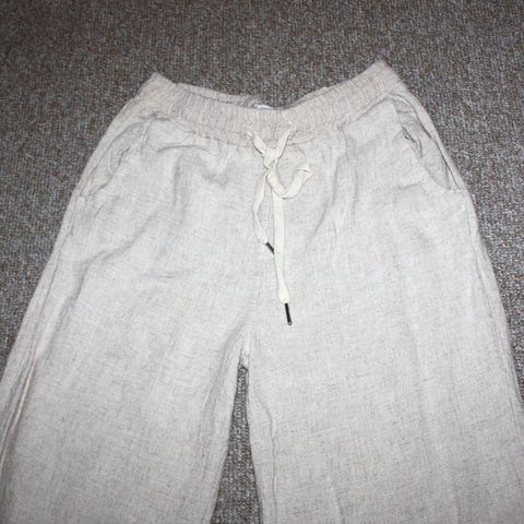 Bukser, Sommerbukser, str. 42, Beige, 95% bomuld, 5% elastane, God men brugt, Fine løstsiddene sommerbukser. Den ene bæltestrop er løs - kan sys (se billede 3).