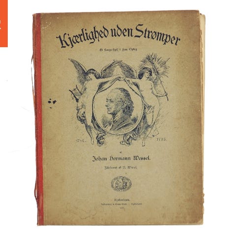 Kærlighed uden strømper, Johan Herman Wessel, genre: drama, Paperback, let krøllet på forsiden og lidt slidt omslag, derfor den lave pris, men siderne er dog rigtig pæne.