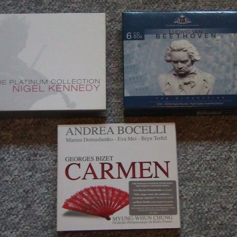 CD cover med Mozart, Verdi, Beethoven, Grieg m.fl: La Traviata, Neu jahres konzert, , klassisk, Cover med 20 stk. CD’er alt fra Mozart, Strauss til Rachmaninoff sælges samlet eller stykvis.