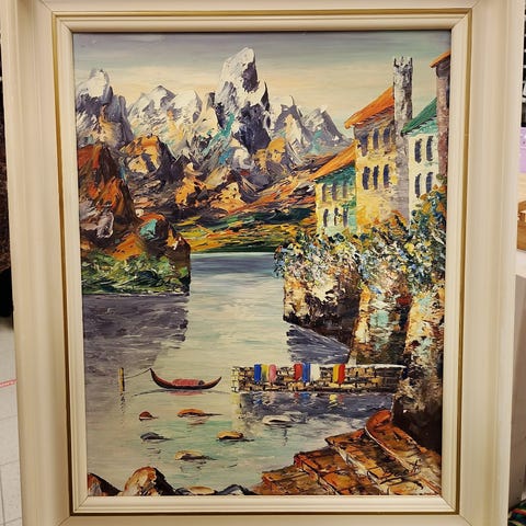 Oliemaleri, Bech voght Sørensen, motiv: Landskab, b: 33 h: 69, Rimelig stand.