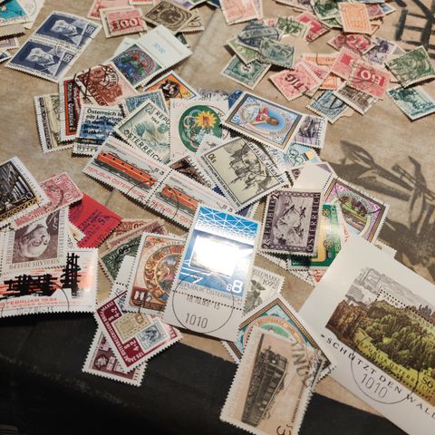 Østrig, Mest Enkeltmærker, 7 plancher med portomærker m.v. fra Østrig. Alle mærker er forskellige og opsat i katalogorden efter AFA. Det er en blanding af postfriske, stemplede og ubrugte mærker. Sælges uden plancher.