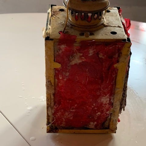 Hellesens trælygte. F. Gottlieb Hansen, Gammel trælygte fra Hellesens