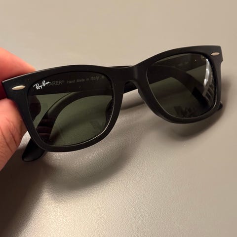Solbriller herre, Ray Ban, Ray-Ban wayfarer II (Wayfarer 2) solbrille. Næsten ubrugt. Fremstår som nye. Stel: spraglet. Glas: Brune.