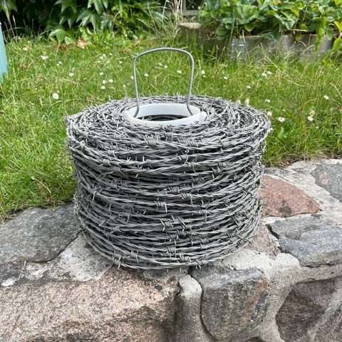 Varmgalvaniseret tråd til brug i haven som hegn, plantestøtte eller opbinding.