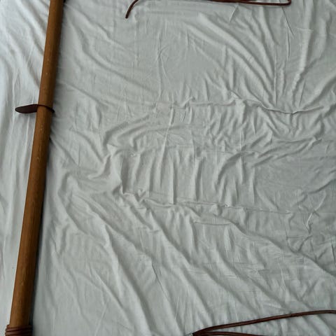 LINDDNA, Ubrugt LINDDNA Wall Swing garderobestang, 50 cm i eg natur og lædersnor.