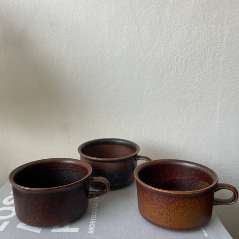 Koppen kan snildt rumme 2 dl.. Den er ca. 6,5 cm høj - diameter knap 10 cm. Underkoppen måler knap 15 cm. Jeg har 10 duo-sæt, der alle er i meget fin og hel stand. Pris pr. duo-sæt kr. 70. Ved køb af flere sæt - finder vi en pris. Uden stempel. Kan afhentes 8381 Tilst eller sendes + forsendelsesomkostninger.