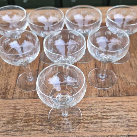 Rødvinsglas med flot mønster.