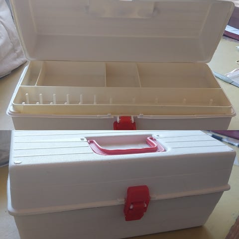 Flot sort sytaske med magnetisk drejefod og som har en masse rum til div. sytilbehør.