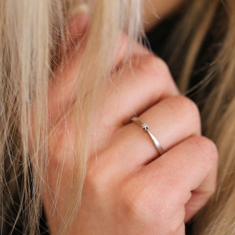Diamant solitairering i 14 karat hvidguld med blank overflade og 1 brillantsleben diamanti Wesselton/SI på 0,05 ct. Se fotos for størrelse(53-54).