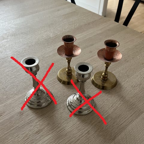 Lysestager, 2srk. lysestager som oprindelig er kobber men sprayet guld farvet. Nemme at hænge op. Sælges samlet.