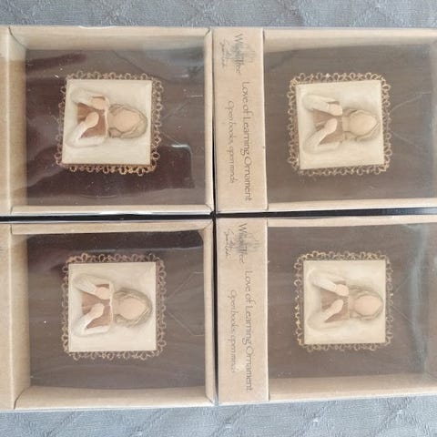 Keepsake / Memory Box, Willow Tree, I den smukke Willow Tree serie med de kendte engle findes der også en række små æsker til gemmeting og minder. I denne er teksten inden i æsken: Appreciating your kindness! Teksten på undersiden er Thank you. Oval æske Højde: ca. 4,5 cm B: 6,5 cm L: 9 cm. Nyprisen er ca. 370 kr. men denne er udgået. Se også mine andre Willow Tree annoncer.