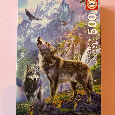 2 PUSLESPIL med naturmotiver af ulv og ugle, puslespil, Samlet pakke med 2 puslespil på hhv. 500 (EDUCA PUZZLE) og 1000 (TREFL Premium Quality) brikker.