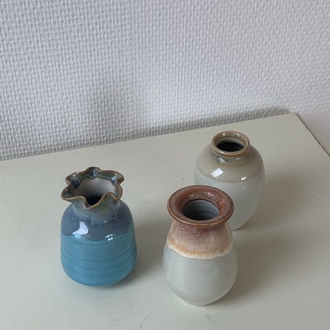 to små ubrugte vaser af glaseret keramik i