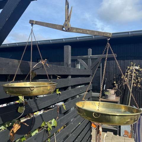 Bismervægt, Messing, 100 år gl., Flot gammel bismervægt i komplet udgave.