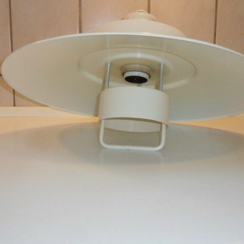 1 stk hvid retro hængelampe med messing i top incl. fatning samt en ekstra fatning