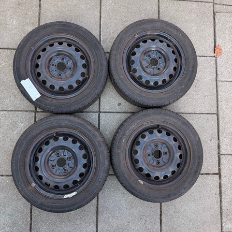 Stålfælge, 15", 195 / 65 / R15, krydsmål 4 x 108, ET 18, sommerdæk, Michelin, 1-3 mm mønster, fælge med dæk, 4 stk. pæne 15" stålfælge med Michelin Energy Saver sommerdæk 195/65 R15 91H.