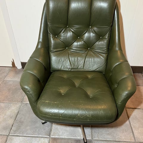 Lænestol, tekstillæder, Retro dreje lænestol, Inkl. skammel.