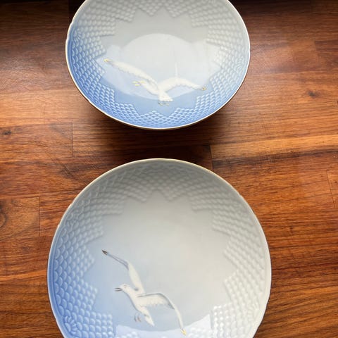 Porcelæn, Skål, Bing og Grøndah Balerina/mågestel l, 2 stk tror at stellet hedder Balerina fra Bing og Grøndahl.