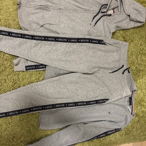 fritidsbukser Tommy jeans fra Tommy Hilfiger , mørkeblå og hvid , Ubrugt, Super fede trackpants i str medium Str. 31. Aldrig brugt.